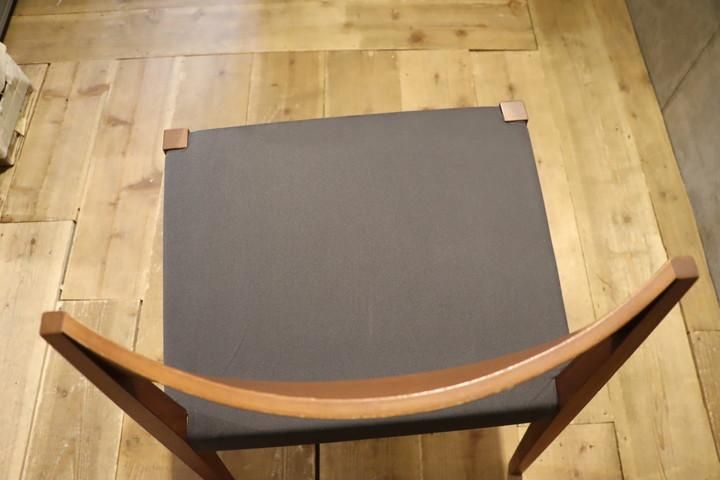 シンプルな構成でありながら、モダンで個性的なフォルムのチェア。