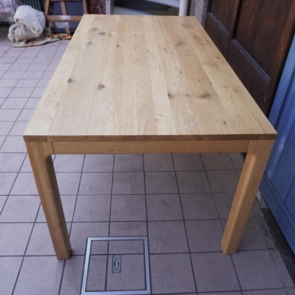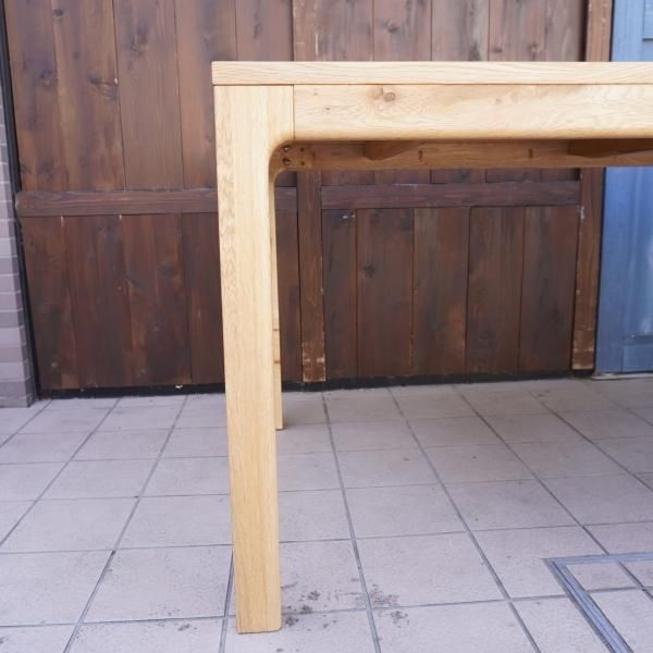 自然な表情が魅力的な節入りのナラ材を使用したダイニングテーブル。