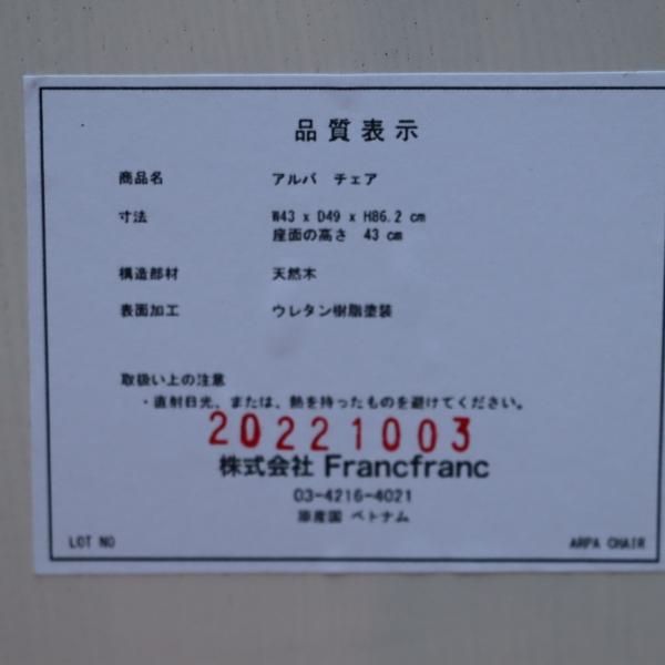 そんなFrancfrancより アルパ ダイニングチェアです!