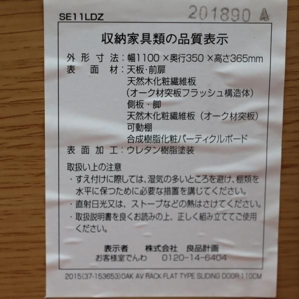 人気メーカー無印良品よりオーク材 AVラック W110cmです。