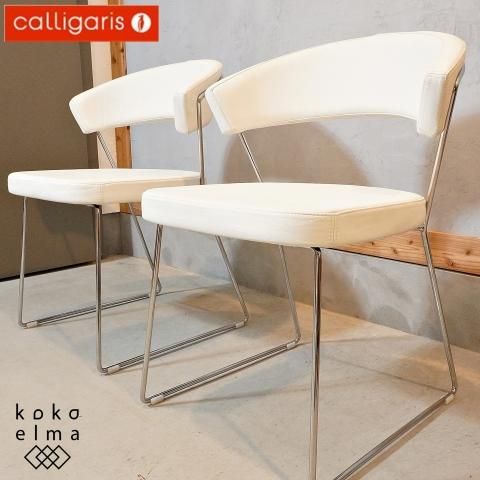 イタリアCalligaris(カリガリス)社の新たなラインconnubia(コヌビア)よりNEW YORK(ニューヨーク)ダイニングチェア 2脚セットです♪本革とスチールがモダンな印象の食卓椅子です☆