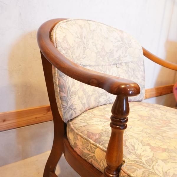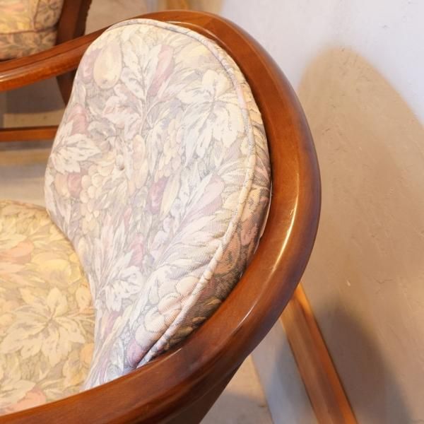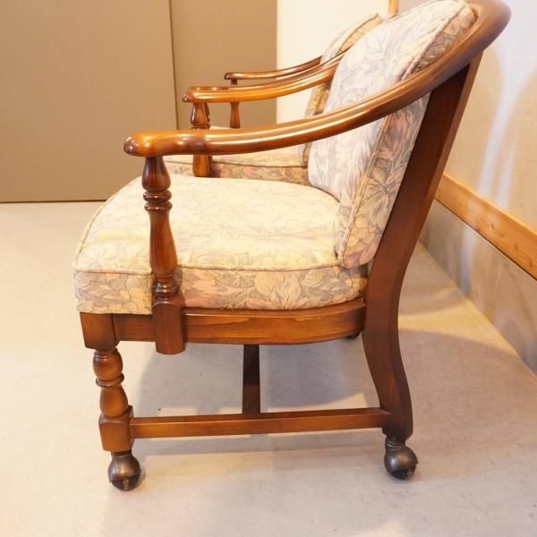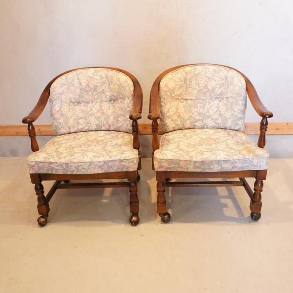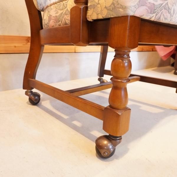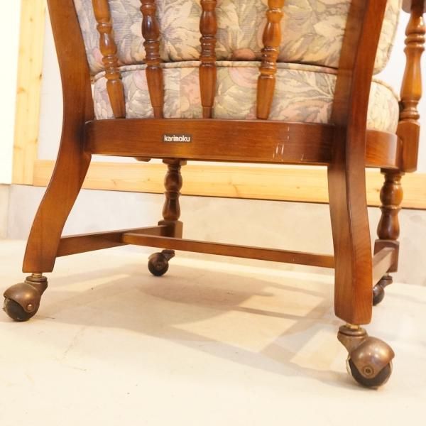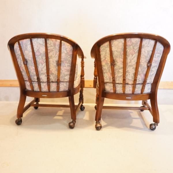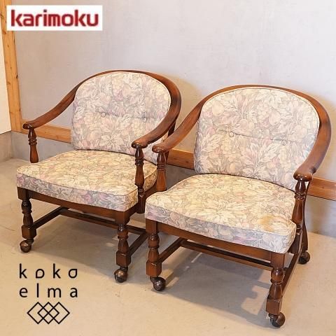 値下げ/Karimoku(カリモク家具)のCOLONIAL(コロニアル)シリーズ、アームチェア2脚セットキャスター付き♪アメリカンカントリースタイルなデザインと花柄のファブリックで上品な印象に。