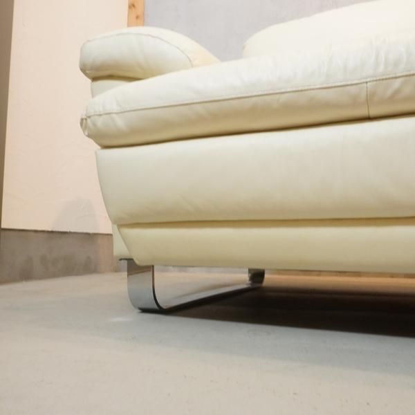 レザーとステンレスレッグを組み合わせたイタリアンモダンらしいスタイリッシュなデザイン。