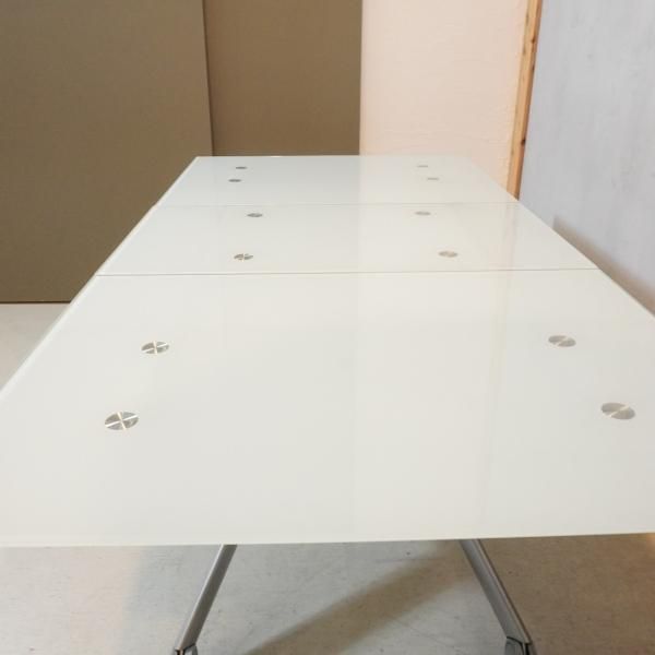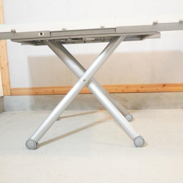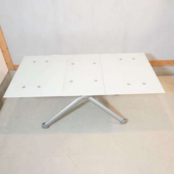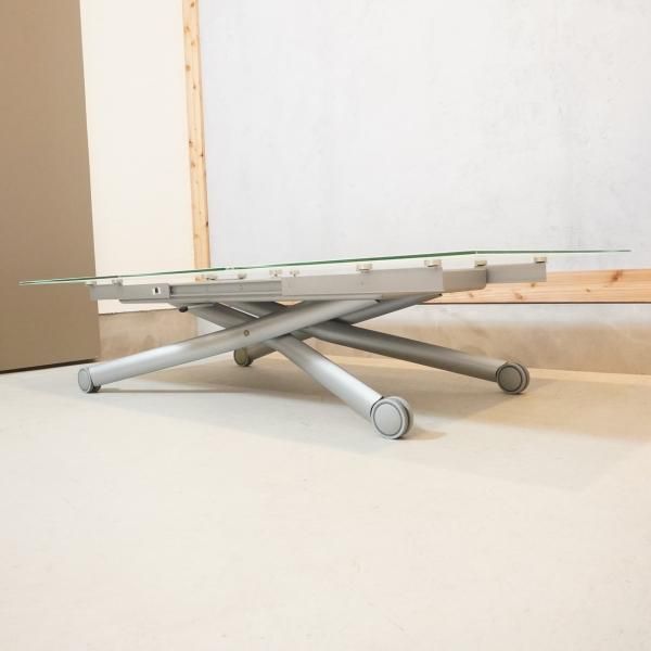 イタリアのDOMITALIA(ドミタリア)社より伸長式リフティングテーブルです。人数や用途に合わせて大きさも高さも変えられるフレキシブルなダイニングテーブルはガラス天板がインテリアをモダンな空間に♪