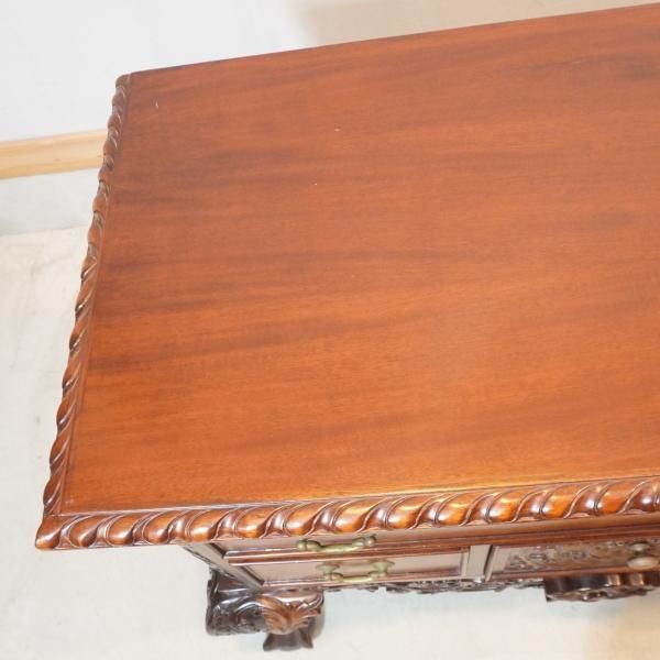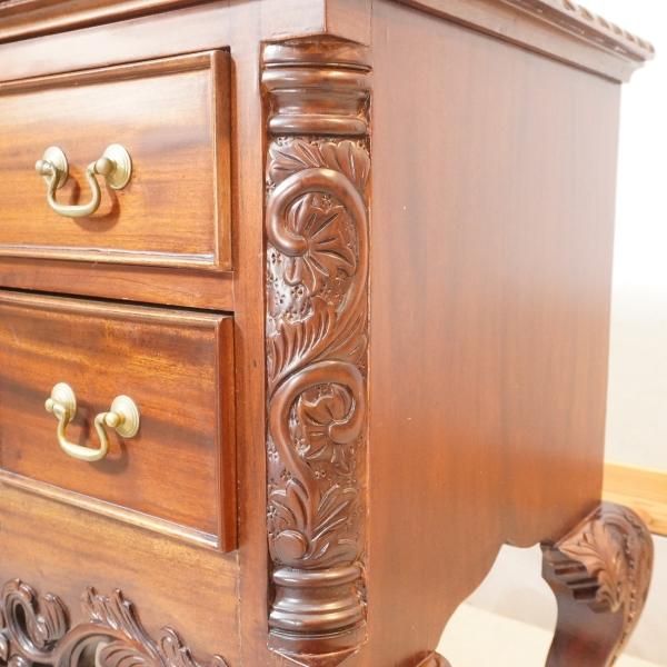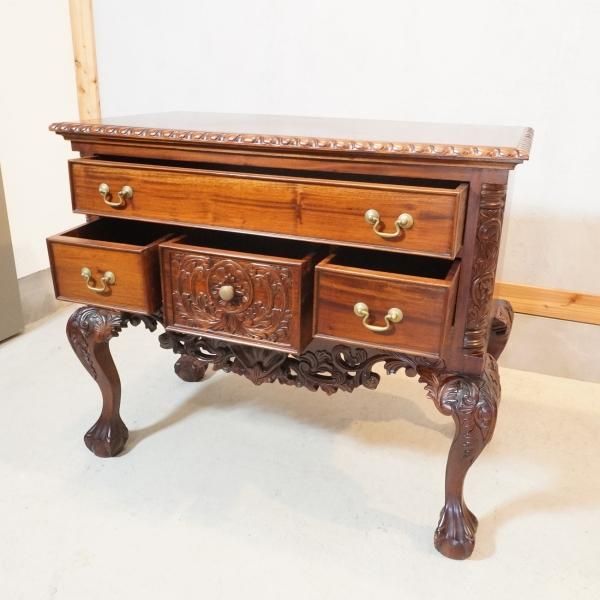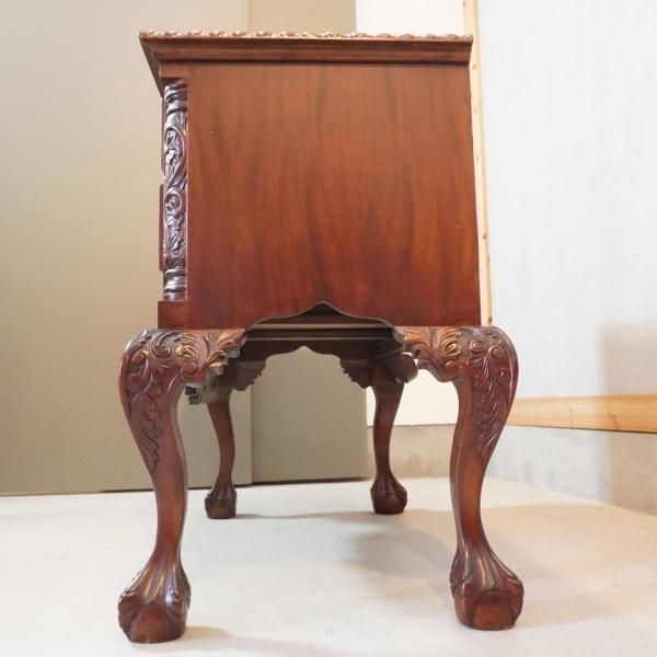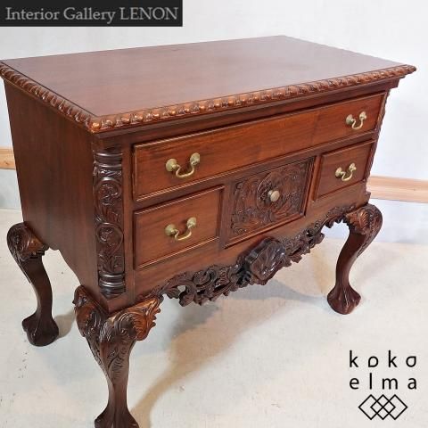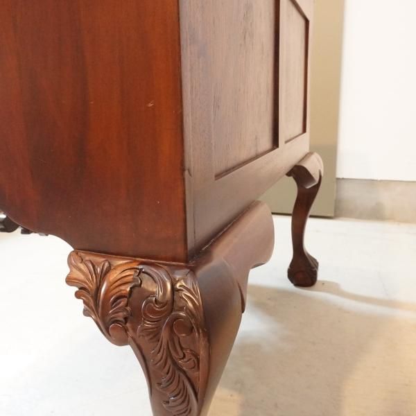 LENON(レノン)の猫脚と木彫装飾が美しいチッペンデール ローボーイ (L)です!上品なマホガニー材とクラシカルなデザインが洗練された印象のコンソールチェスト。店舗などにもおススメ♪