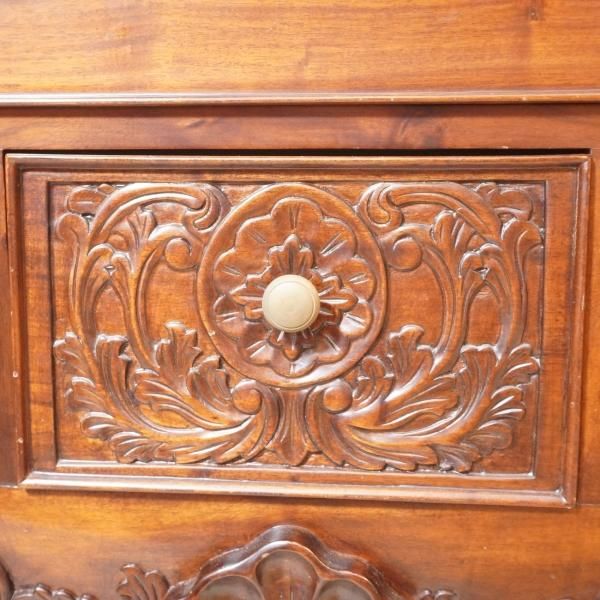 西洋の伝統的な木彫装飾を備えた存在感の在るサイドチェスト。