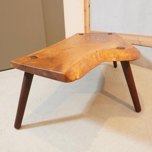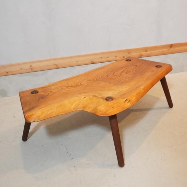 天然木の美しい杢目が印象的なローテーブルです。欅材一枚板からなる天板は温かみがあり、存在感のあるフォルムのリビングテーブル。ご家庭のリビングにはもちろん、店舗用の花台や飾り台にもオススメです♪