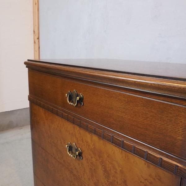 シンプルなデザインですが、上品な雰囲気を醸し出すアンティーク調のチェスト。