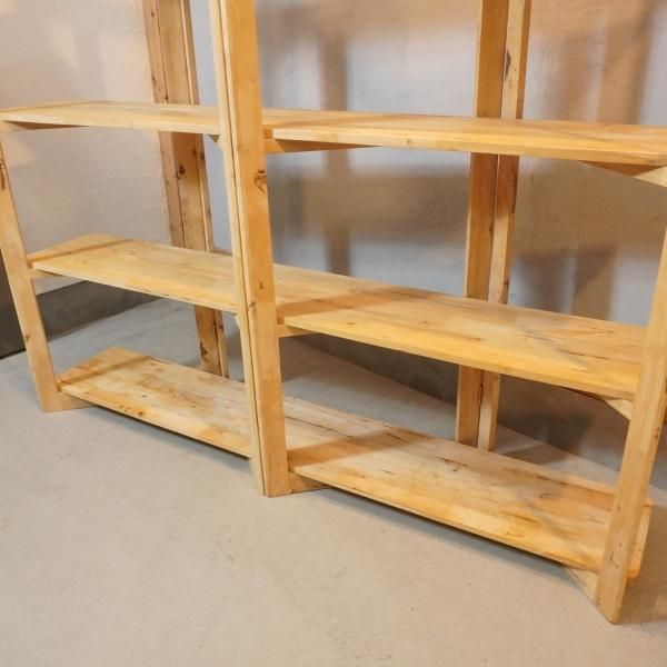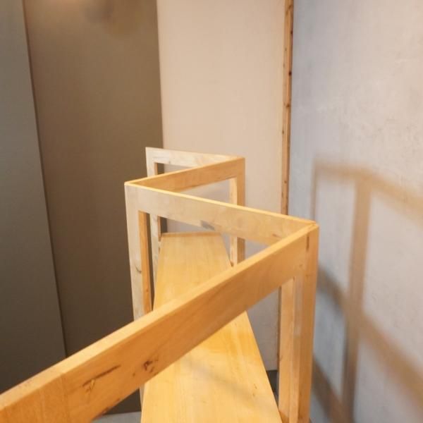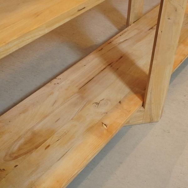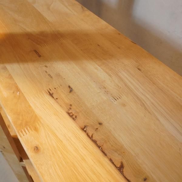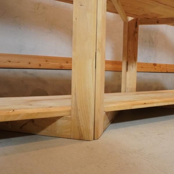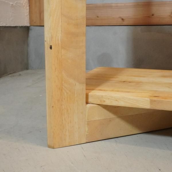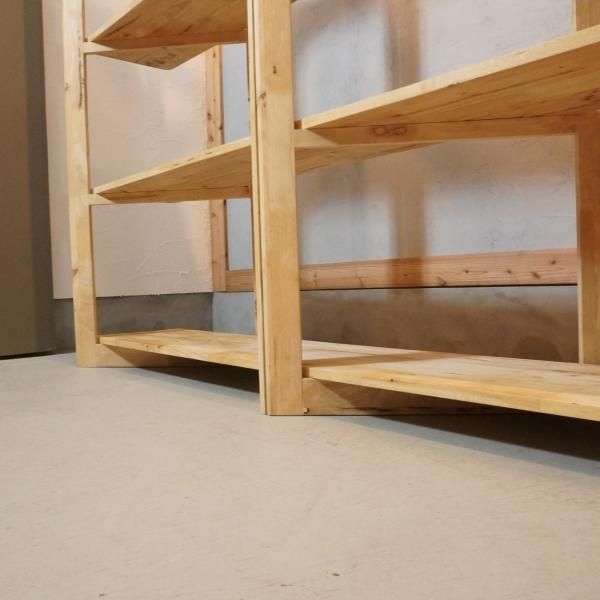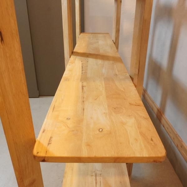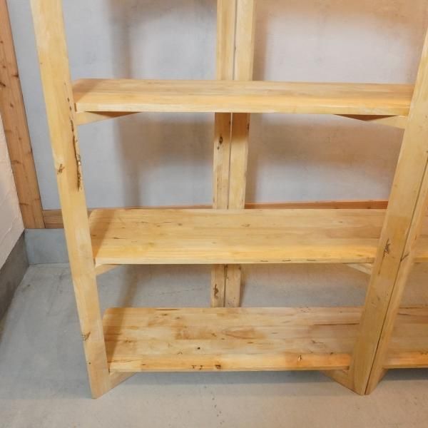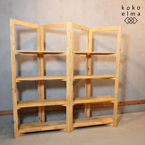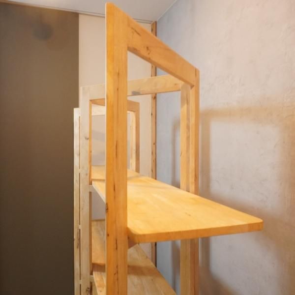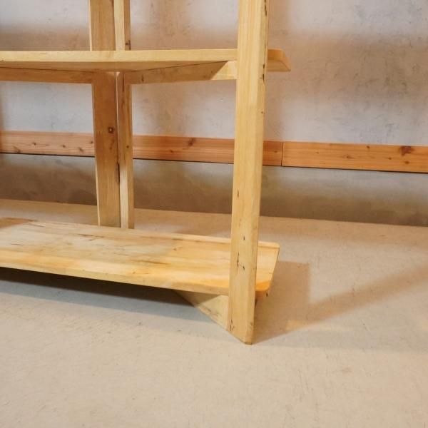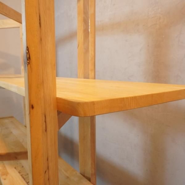 色目の濃淡や節がそのまま活かされた天然木のオープンシェルフ。