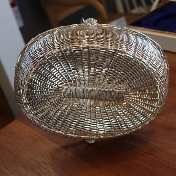 銀メッキを丁寧に編み込んで作られたエレガントな果物カゴは、