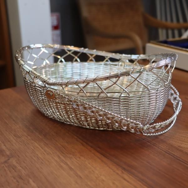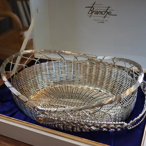 カトラリーや食器などの製造販売を行うAZUMA(アズマ)よりBranche(ブランチ)手編みカゴバスケットです。伝統の手編み技術を用いて、銀メッキを熟練職人が編み込んで作られたエレガントなデザイン。
