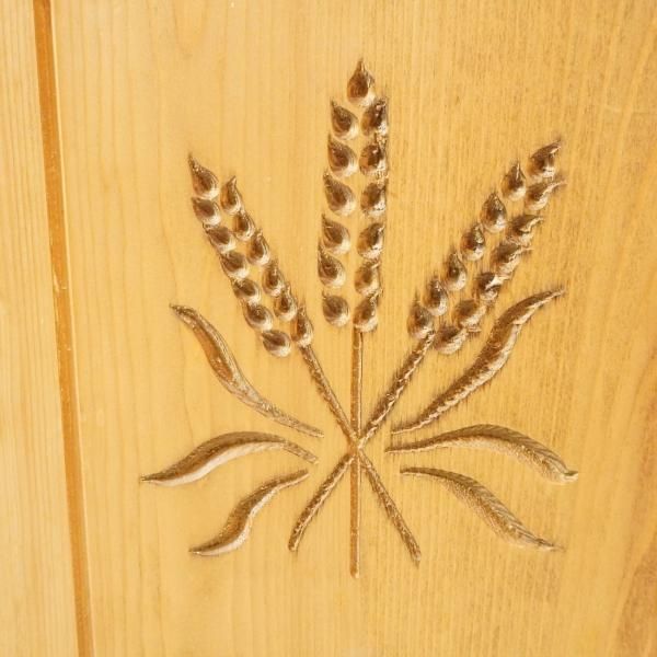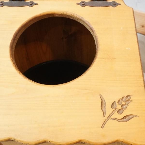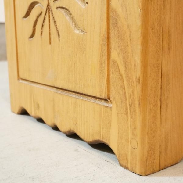 1つ1つハンドメイドで作られたカントリースタイルのパイン材 ダストボックスです。中央には麦の穂が彫られた、木の温もりを感じるレトロで親しみやすいデザイン♪