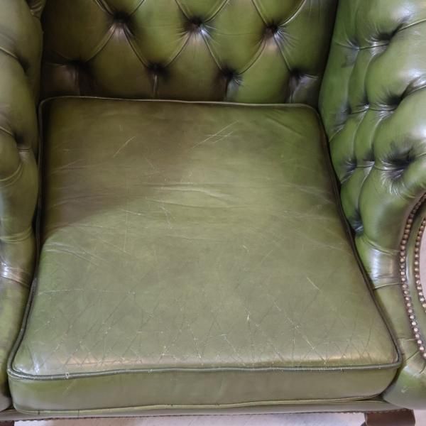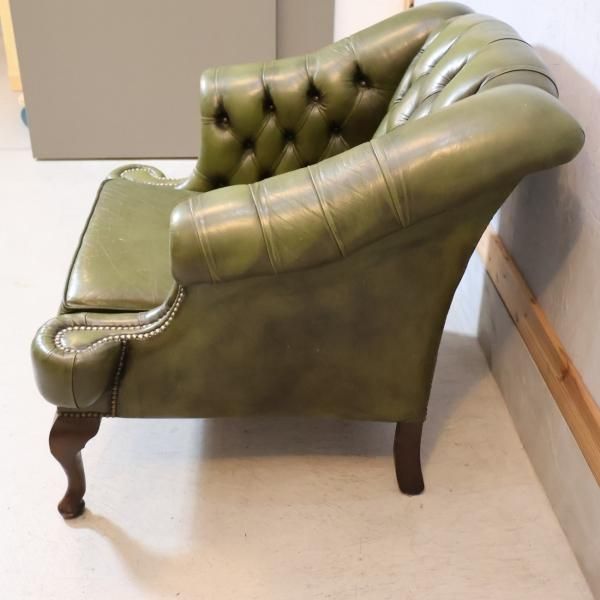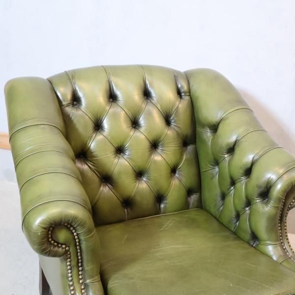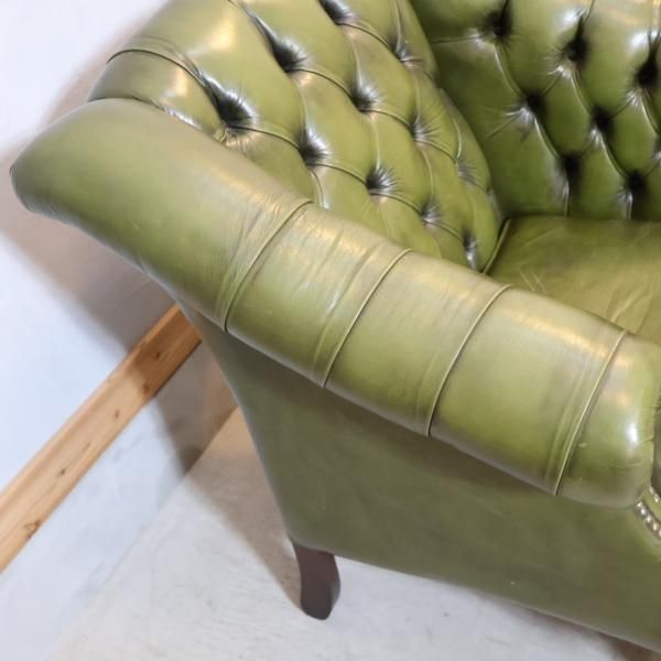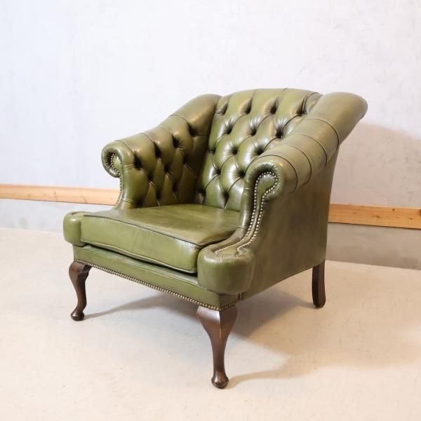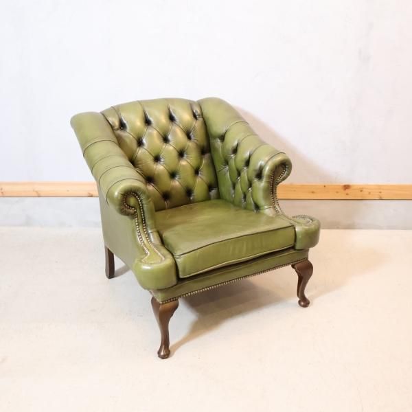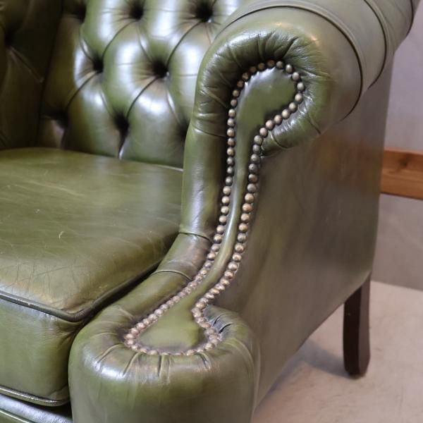 チェスターフィールドスタイルのアンティーク1人掛けソファのご紹介です。