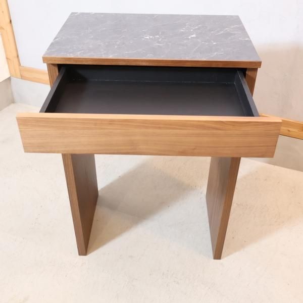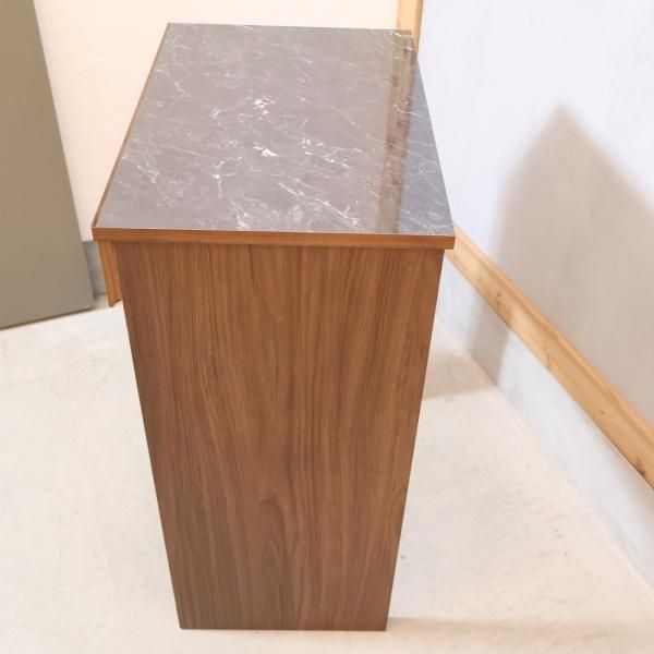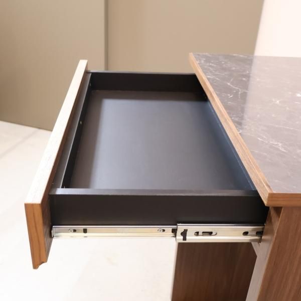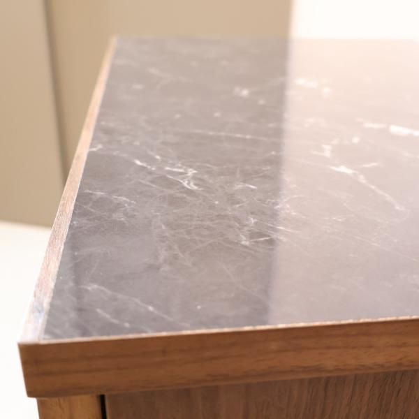 ミディアムブラウンカラーの天板は、大理石柄仕様の高級感のある雰囲気です。