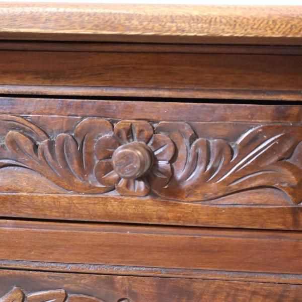 細かな彫り細工と挽物加工の脚部がクラシカルで空間を華やかに彩ってくれます♪