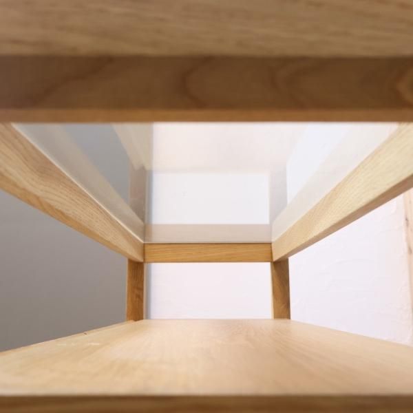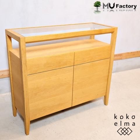 福岡大川の家具工房”MU FACTORY”で作られたオーク無垢材のガラストップリビングボードです。