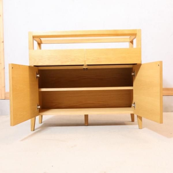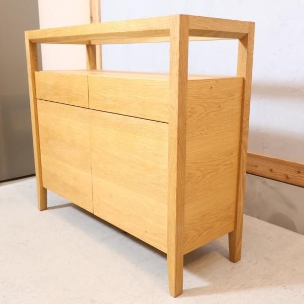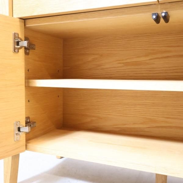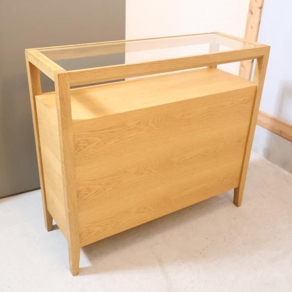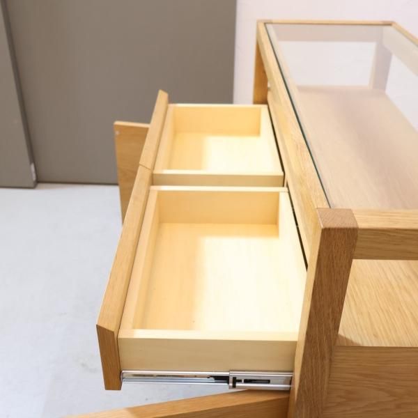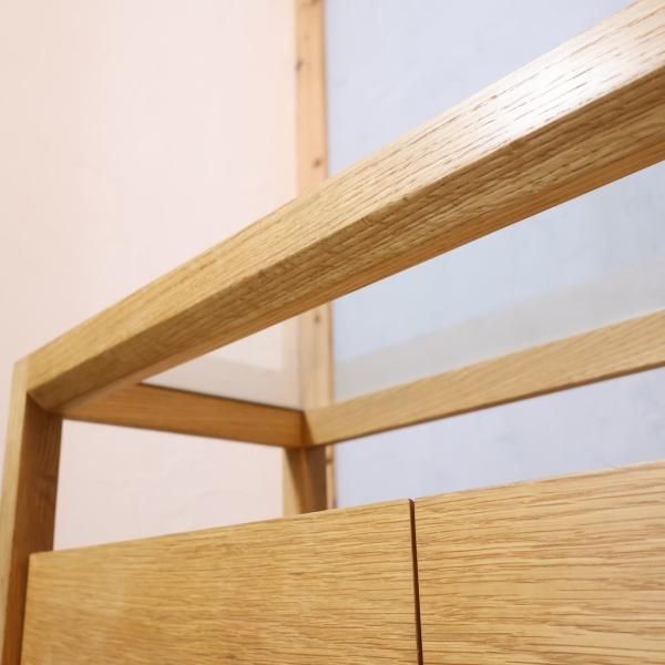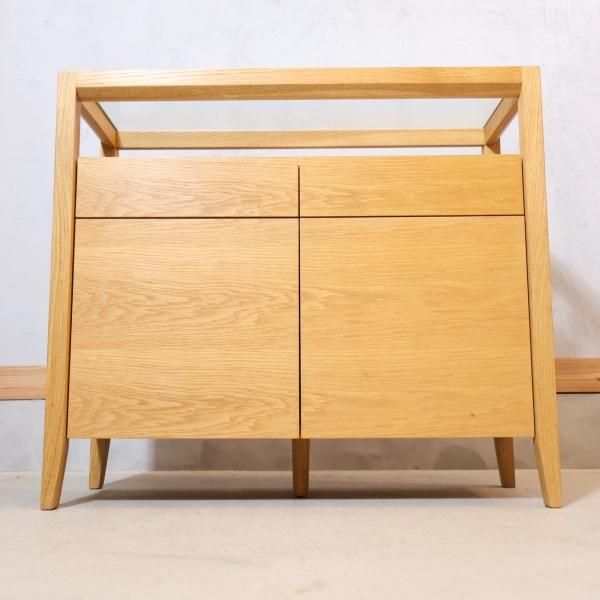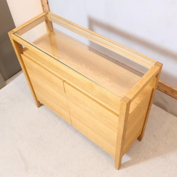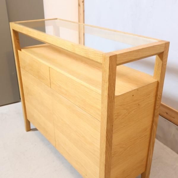 ガラス天板とオーク無垢材を組み合わせたナチュラルテイストのサイドボード。