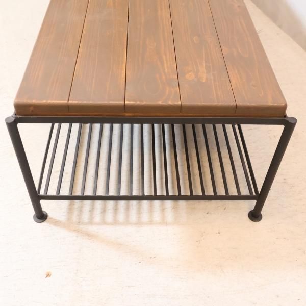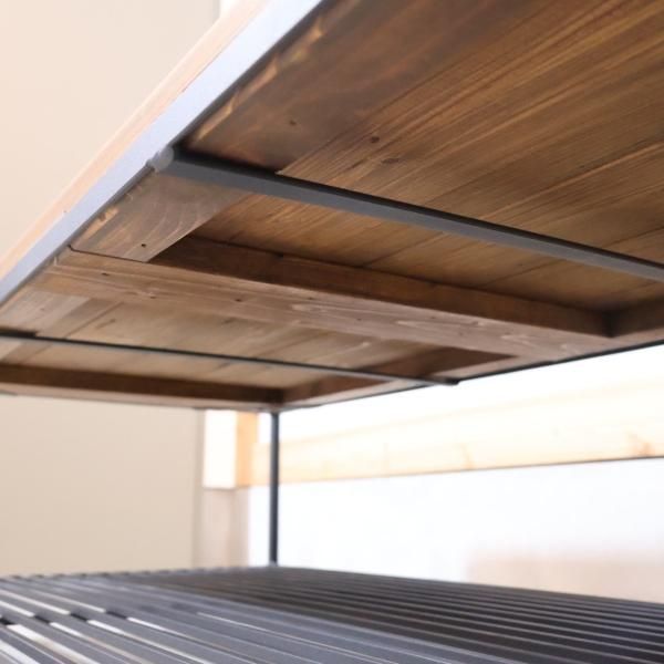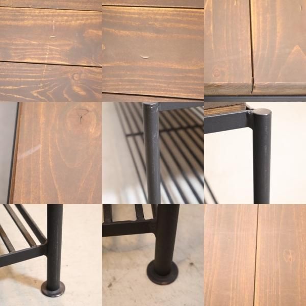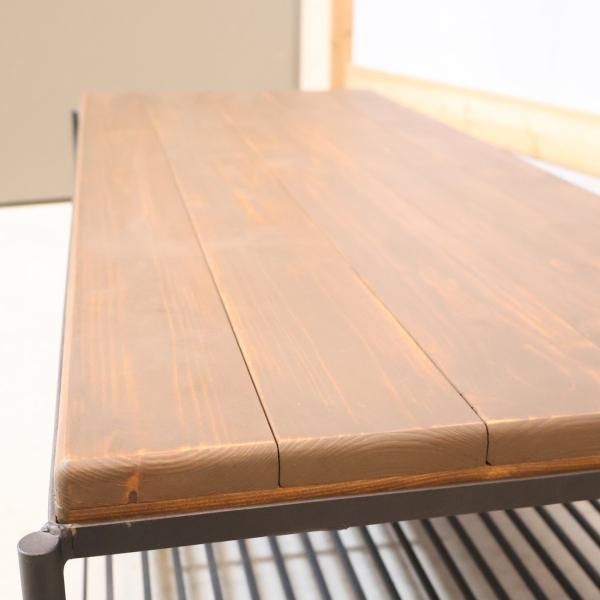 マットな質感と落ち着いた雰囲気のスチール脚とパイン材の組み合わせで