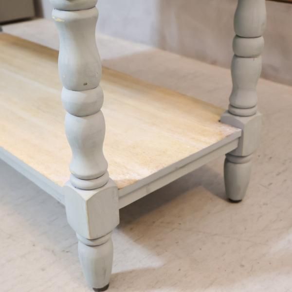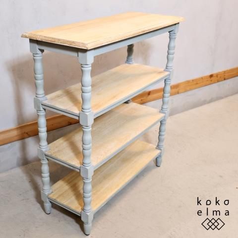 使い込まれたようなシャビーな風合いと明るい色合いが魅力の優しい印象の収納ラック。
