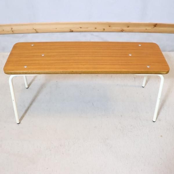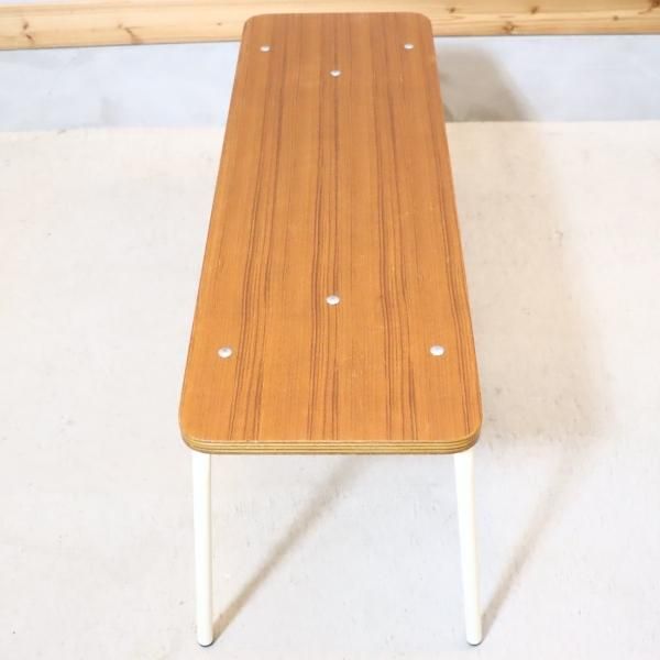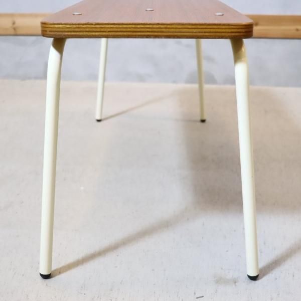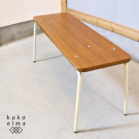 北欧スタイルのチーク材 2人掛けベンチです。プライウッドにパイプ脚の組み合わせがスクールチェアを思わせるレトロなダイニングベンチ。リビングや店舗などのちょっとした腰掛としても活躍します♪