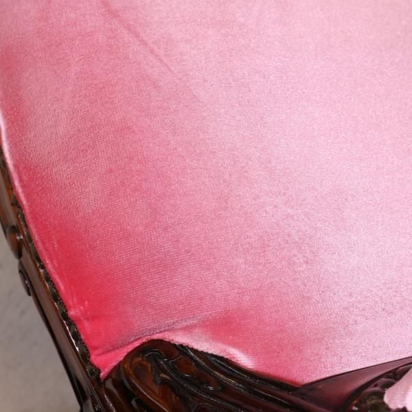 シックな仕上がりのマホガニー材と肌触りの良いベロア生地は、