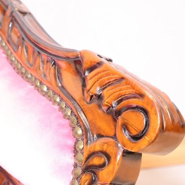 シックな仕上がりのマホガニー材と肌触りの良いベロア生地は、