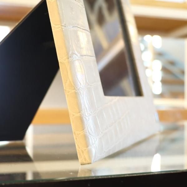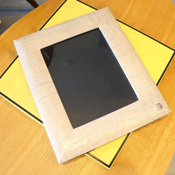イタリアのブランド FENDIのインテリアコレクション FENDI CASA(フェンディカーサ)のフォトフレーム。クロコ型押しレザーが洗練されたラグジュアリーな佇まいの写真立てです♪