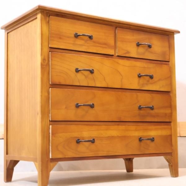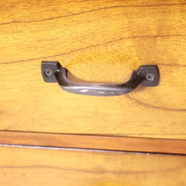 柔らかくな表情の杢目に合わせたアイアンの把手がアクセントに♪