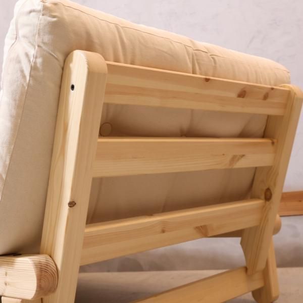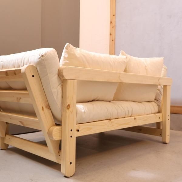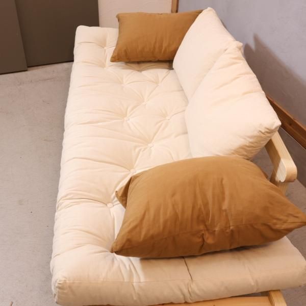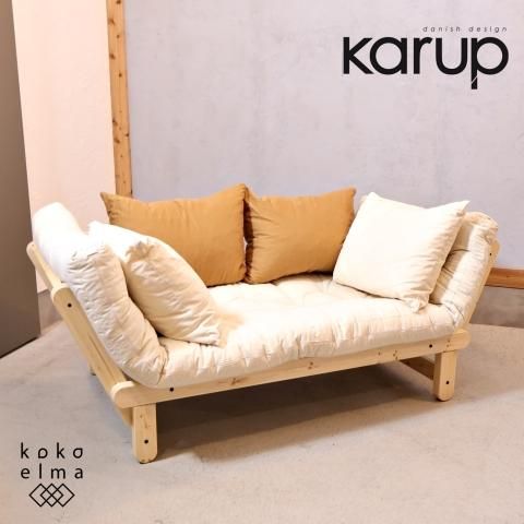 北欧デンマークのメーカーkarup(カーラップ)のパイン無垢材を使用したFuton2(フートン) カウチソファベッドです。 アームは可動式で2人掛けソファや来客時のベッドとしても活躍します♪