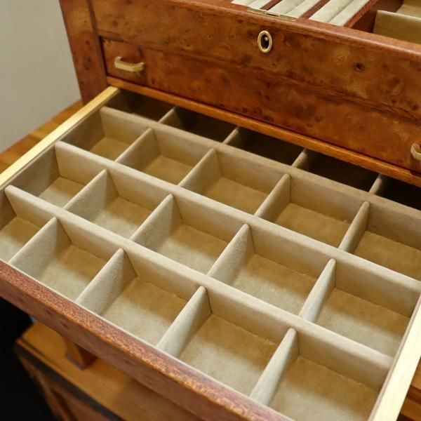 貴金属や小物類を美しく収納でき一段一段開けていくのが楽しみになるボックスは