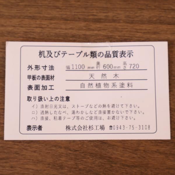 福岡の家具メーカー杉工場よりシンプルなワークデスクのご紹介です。
