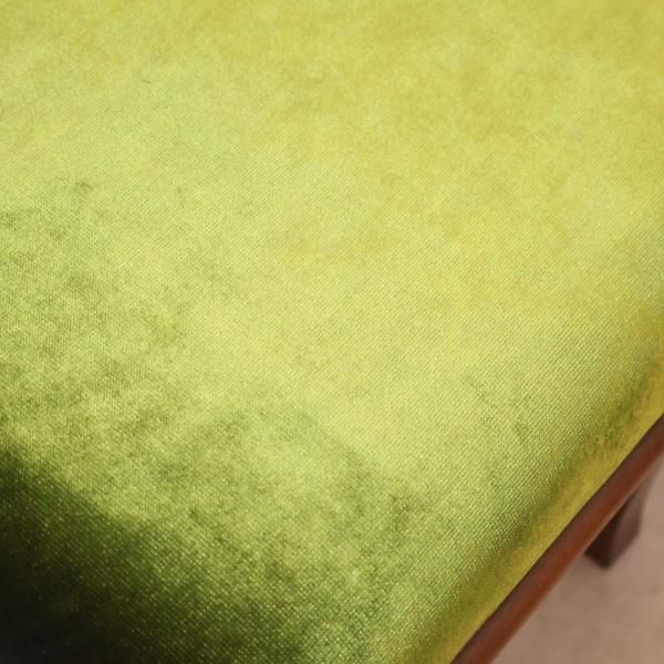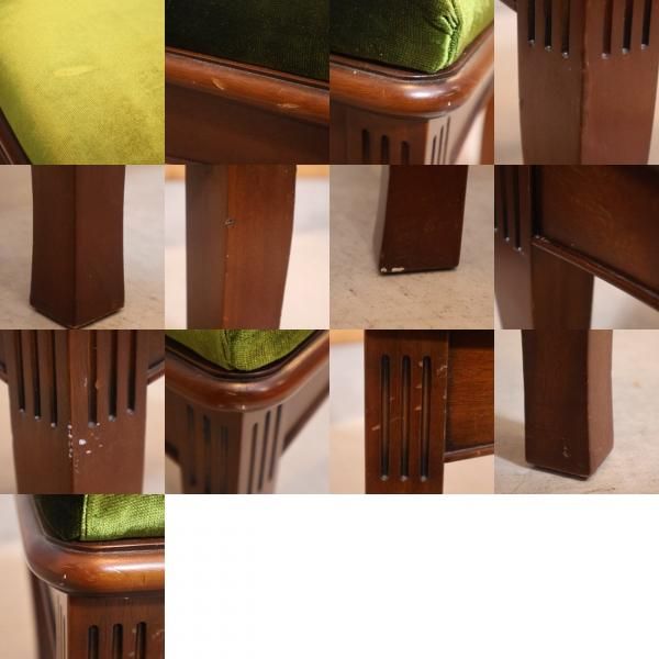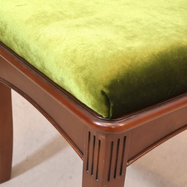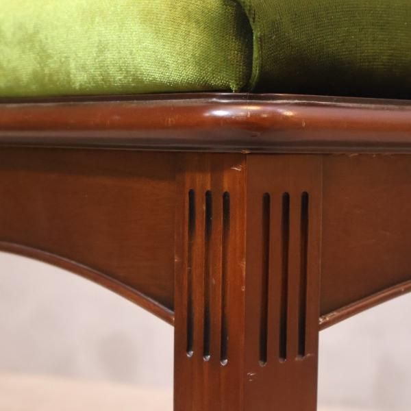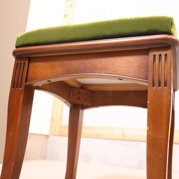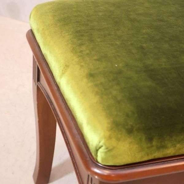上品なグリーンカラーの座面とクラシカルなデザインのフレームがマッチし、