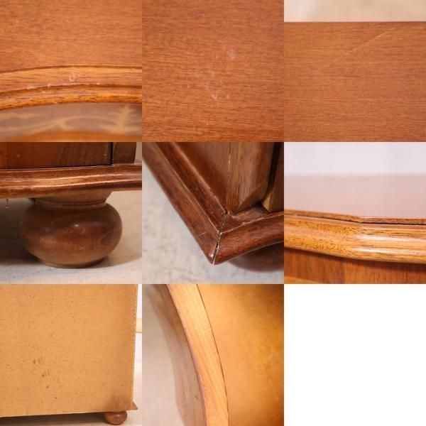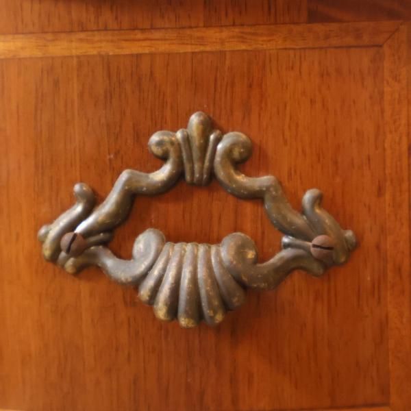 アンティーク調の取っ手と丸みのある脚がアクセントになっています。