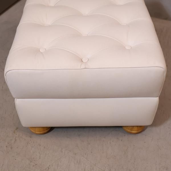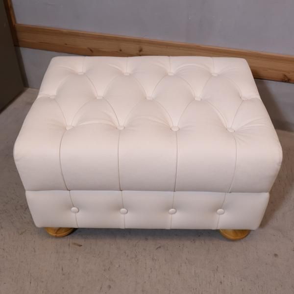 LeClass(ルクラス) レザースツールです。ボタン留めで仕上げた英国トラッドをモダンアレンジしたオットマン。中世ヨーロッパ家具を想わせるラグジュアリーなデザイン♪