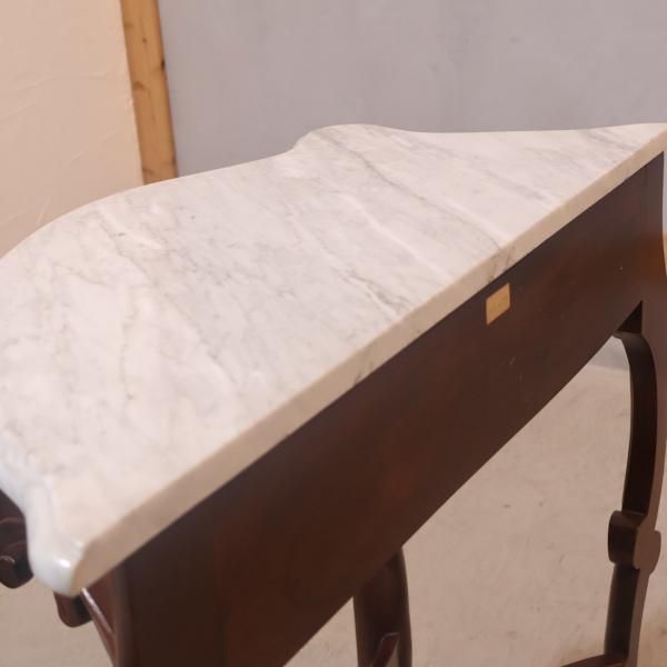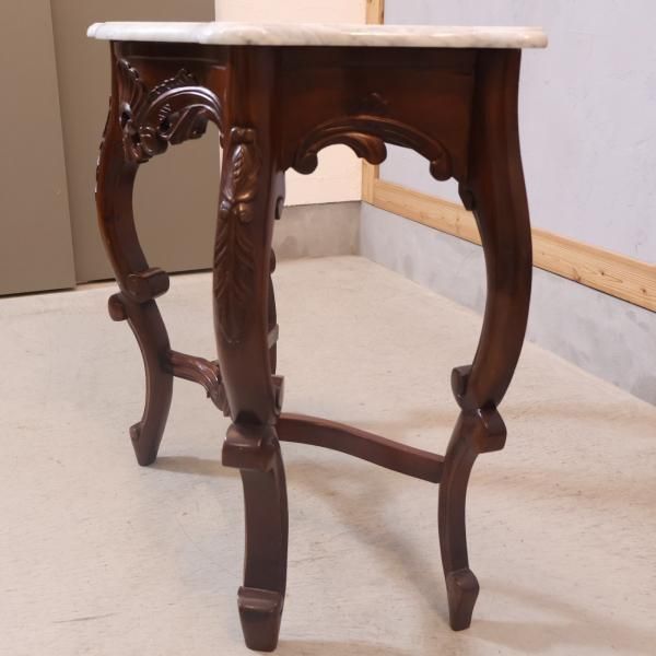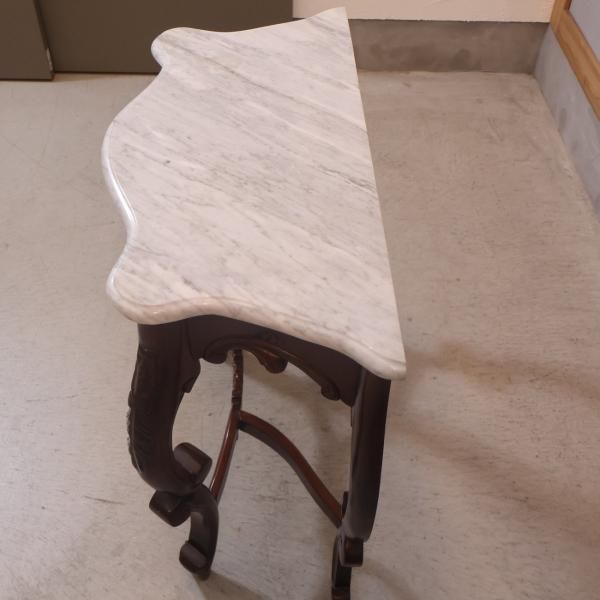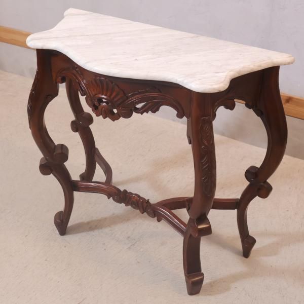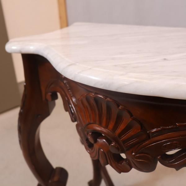 大理石の天板と繊細な彫刻が魅力的なイタリア製コンソールテーブルです。ヨーロピアンアンティーク調の曲線的なフレームに大理石の天板を合わせた優雅でクラシカルなデザインです。