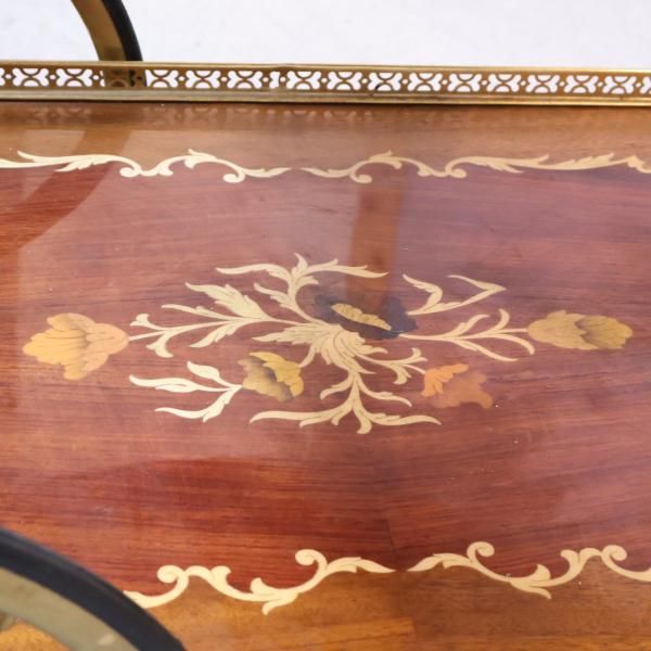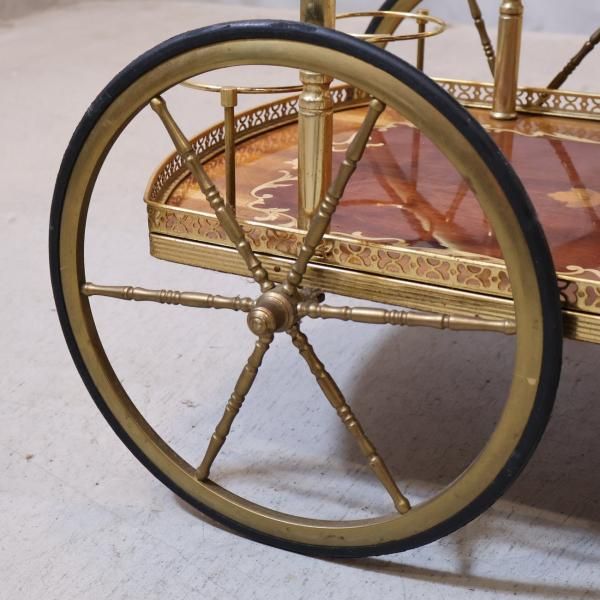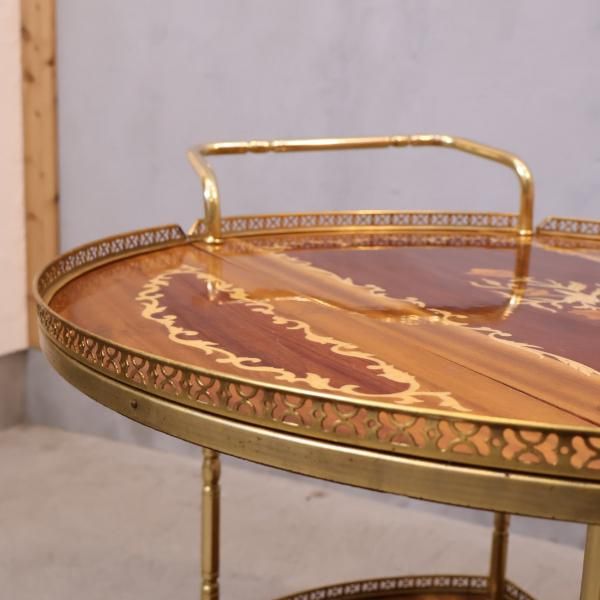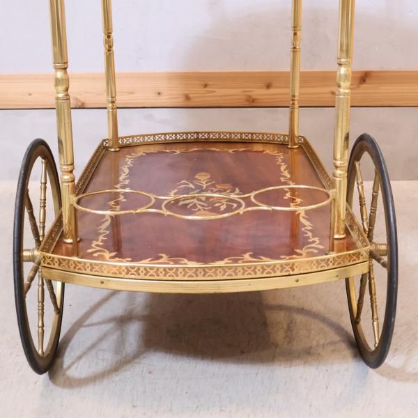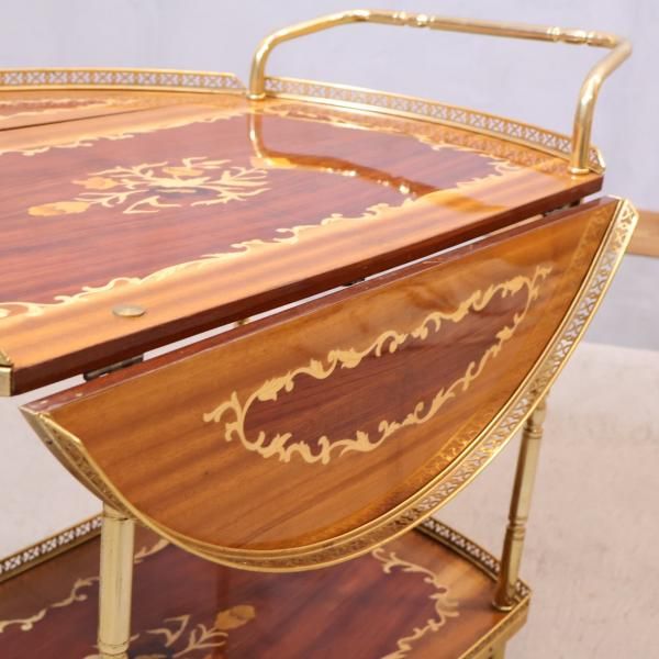 イタリア製の象嵌細工が美しいアンティーク調キッチンワゴンです。クラシックでエレガントなデザインのティーカートはダイニングのアクセントに。リビングなどのサイドテーブルにも。
