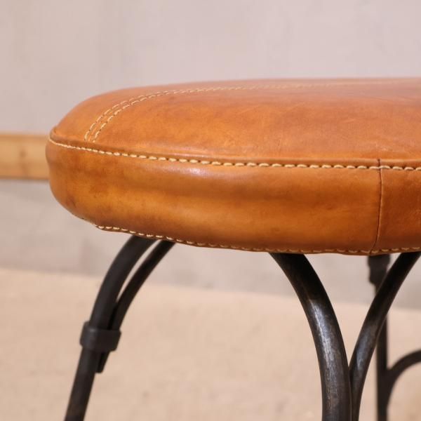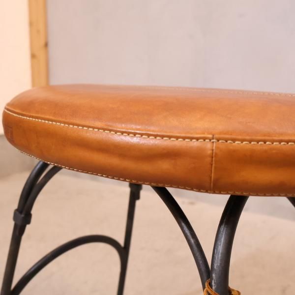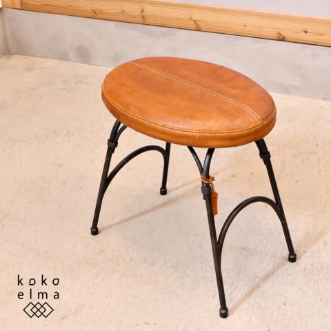 アイアン脚に楕円形の座面が個性的なスツールは、