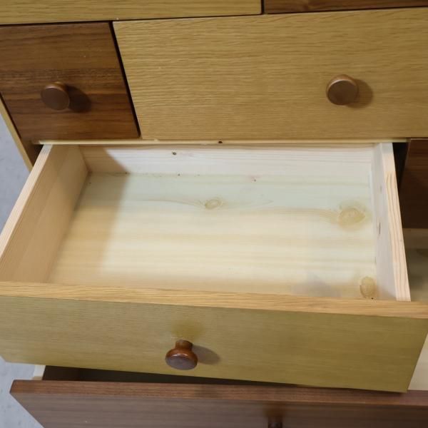 機能性とデザイン性を兼ね備えた美しい木目の天然木ハイチェスト。