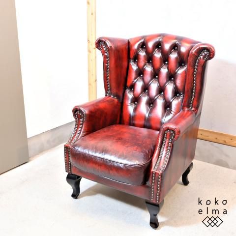 チェスターフィールドスタイルのアンティーク1人掛けソファのご紹介です。
