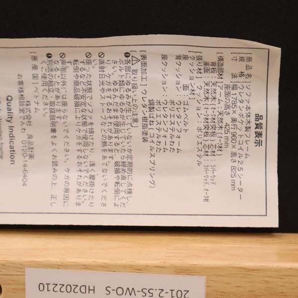 商品名 ソファ本体体木製フレーム ウレタンポケットコイル2.5シーター