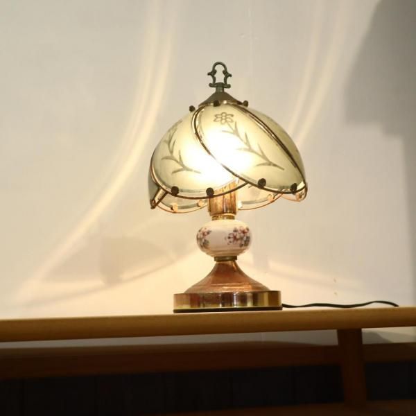 アンティーク調のタッチセンサー式デスクランプです。大正浪漫の雰囲気漂うレトロな3段階調光卓上ライト。ガラスシェードからこぼれるやさしい光がインテリアをエレガントな空間に。