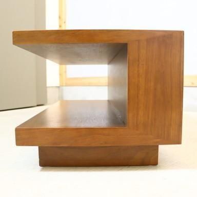 ウォルナット材の深い色合いと落ち着いた雰囲気と直線を活かしたデザインが人気の【アティーノ ソファ テーブル】。