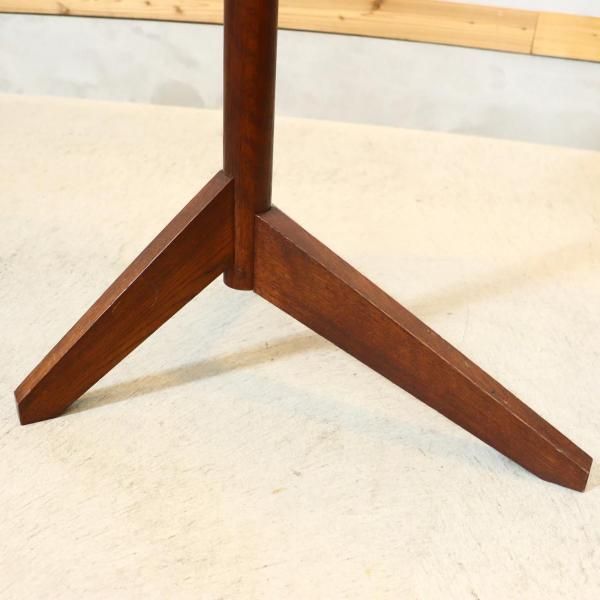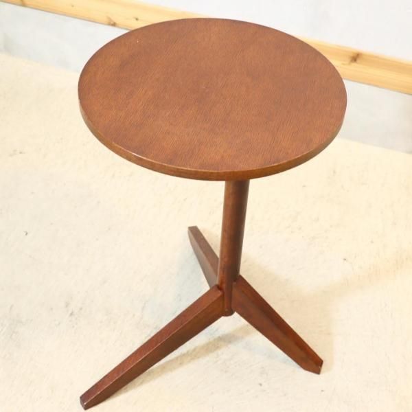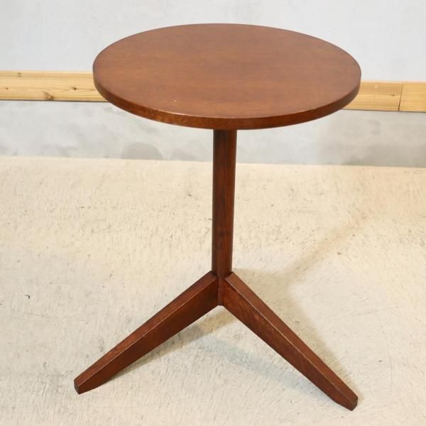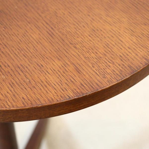 北欧ヴィンテージスタイルの三方向に広がる脚部が特徴的なサイドテーブルです。天然木の温もりを感じさせる落ち着いた色合いのレトロな円形テーブル。ソファサイドやベッドサイドにちょうど良いサイズ♪