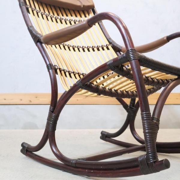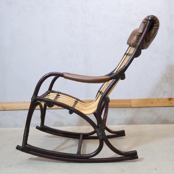 しなやかで丈夫なラタンが優しく身体を包み込む快適な座り心地の揺り椅子。