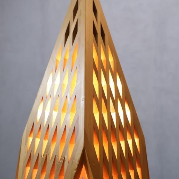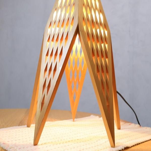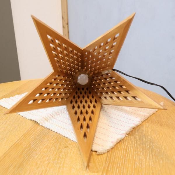 林木工芸が手掛ける”kinoakari(木のあかり)”よりスター フロアライトです。個性的なデザインのフレームに光を灯すと、星形の影が床に照らし出して、温もりのある幻想的な空間に。