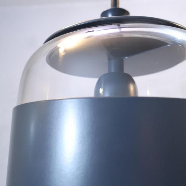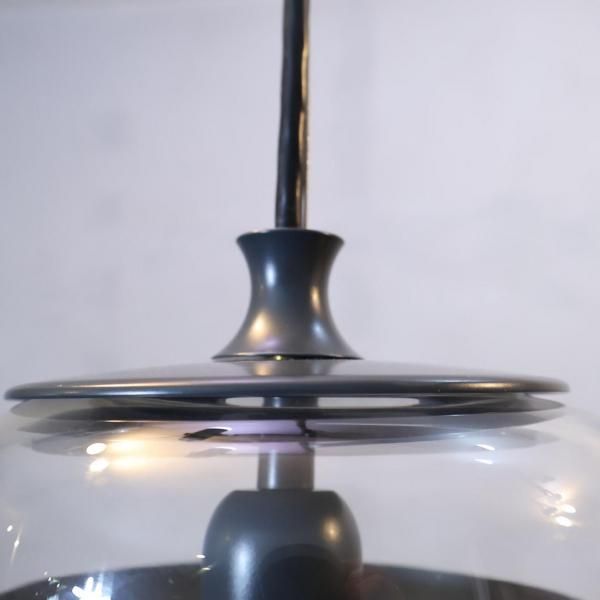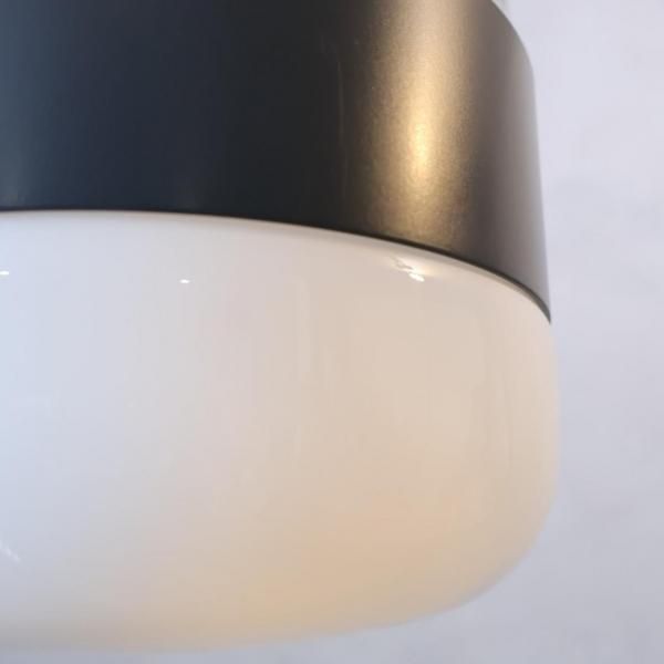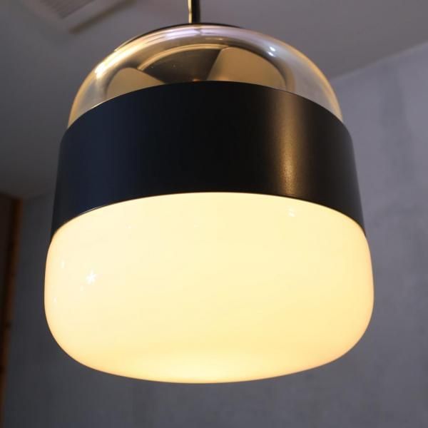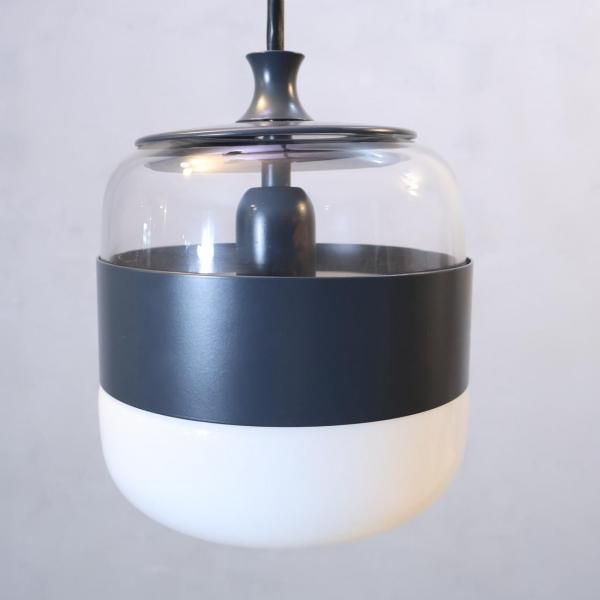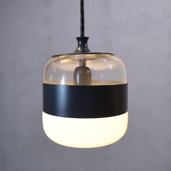 ホワイト、クリアを施したガラスシェードに黒のメタルバンドが全体を引き締め