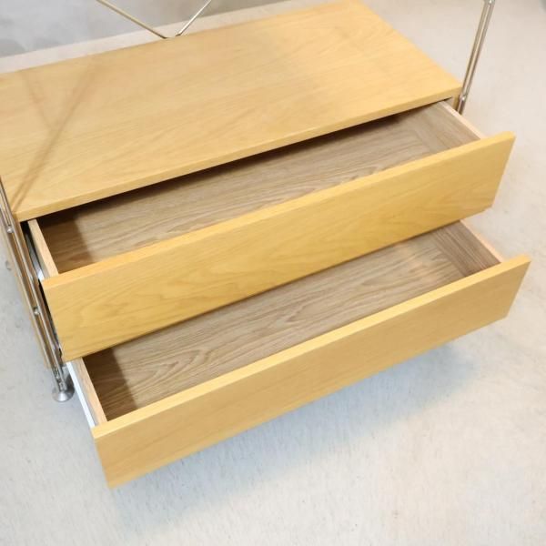 USEDですのでキズ、汚れ等がありますが使用上の問題はありません。引き出し横のパネルのパーツが一部欠品しています。
