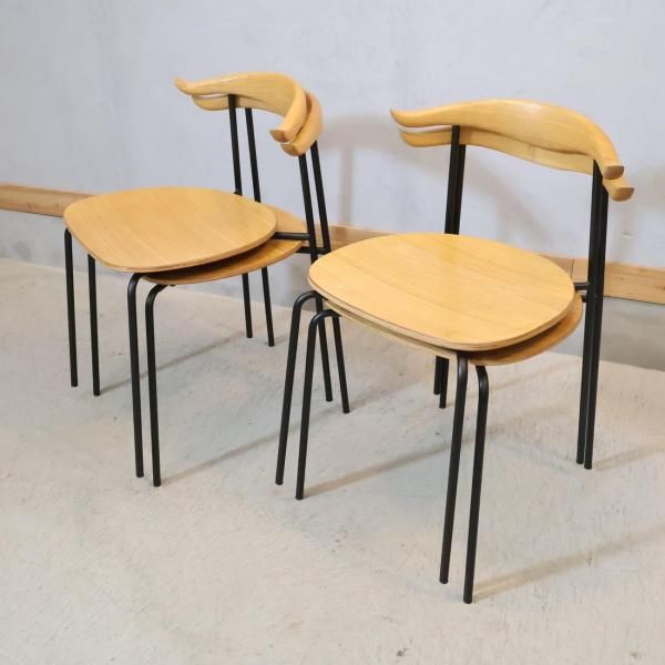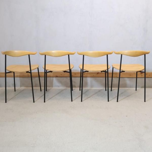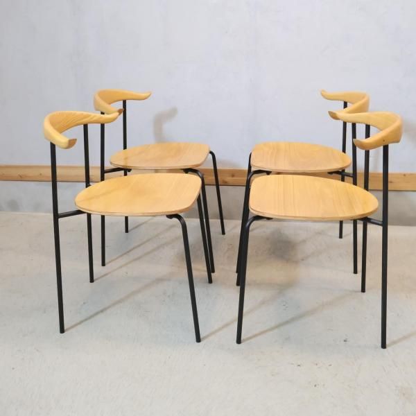 CRASH GATE(クラッシュゲート)/NOR(ノル)のラウルダイニングチェア 4脚セットです。アッシュ材とスチール脚の異素材の組み合わせがスッキリと洗練された印象のセミアームチェアです。