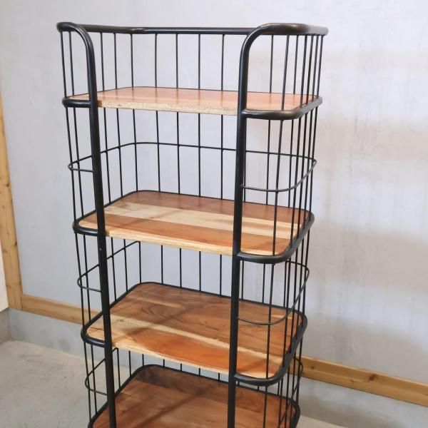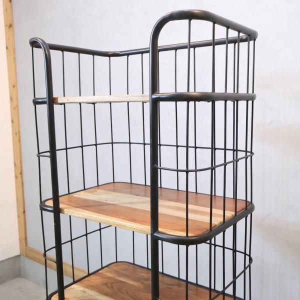 アイアンとウッドの組み合わせが美しい、ヴィンテージスタイルのオープンシェルフ。