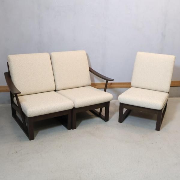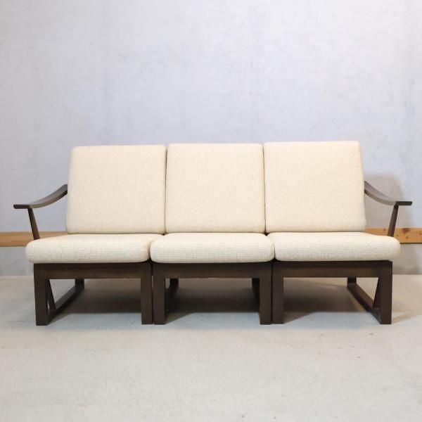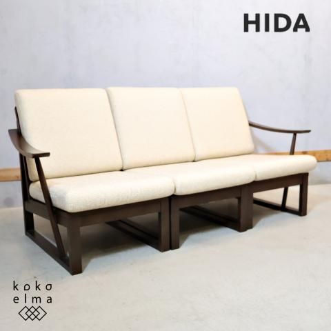 飛騨高山の家具メーカーキツツキマークの飛騨産業の3人掛けソファ。温かみのあるナチュラルでシンプルなセパレート式トリプルソファーです。北欧スタイルや和モダンにもオススメ♪
